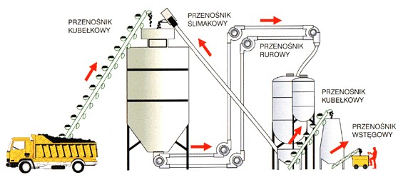 System transportu materiałów sypkich jest projektowany i wykonywany stosownie do wymagań inwstora, zgodnie z przebiegiem procesu technologicnego.