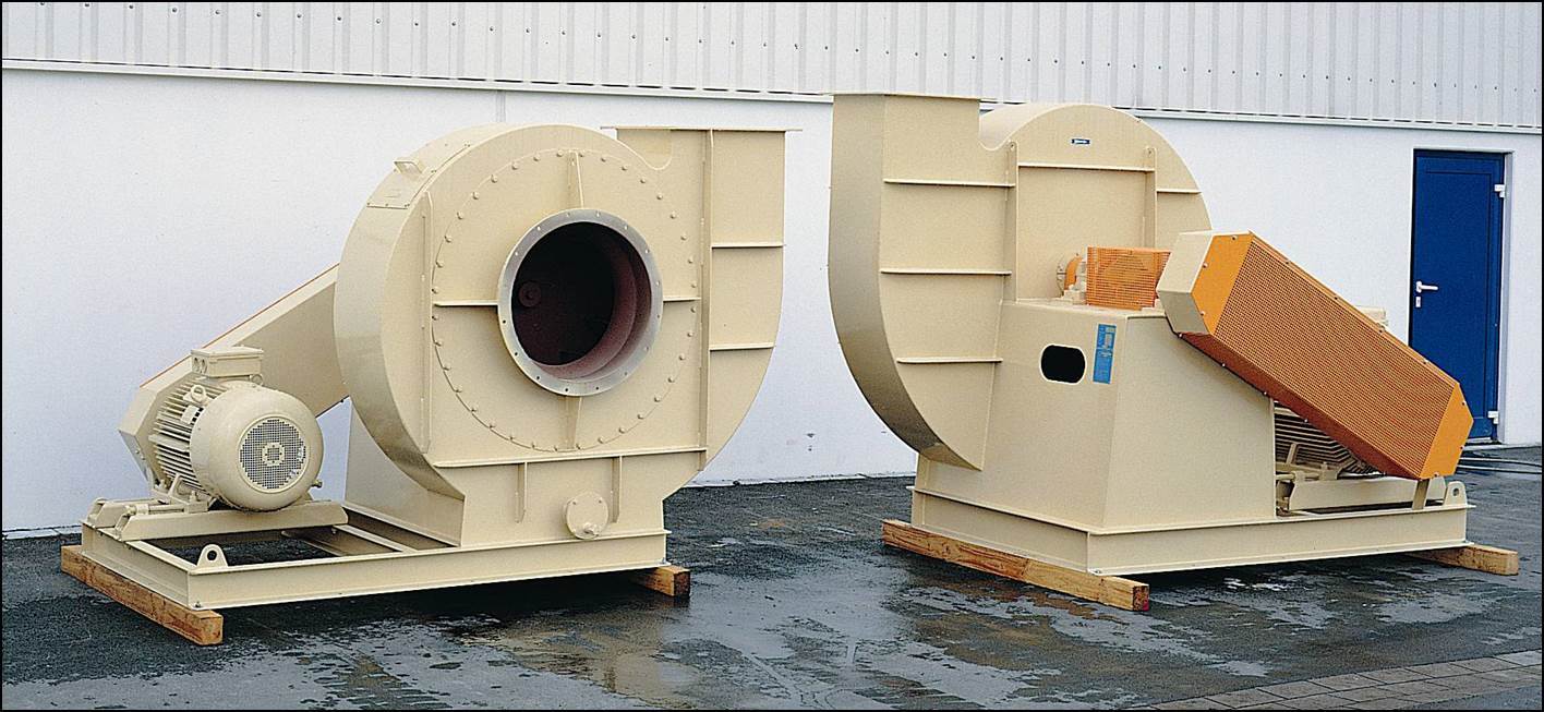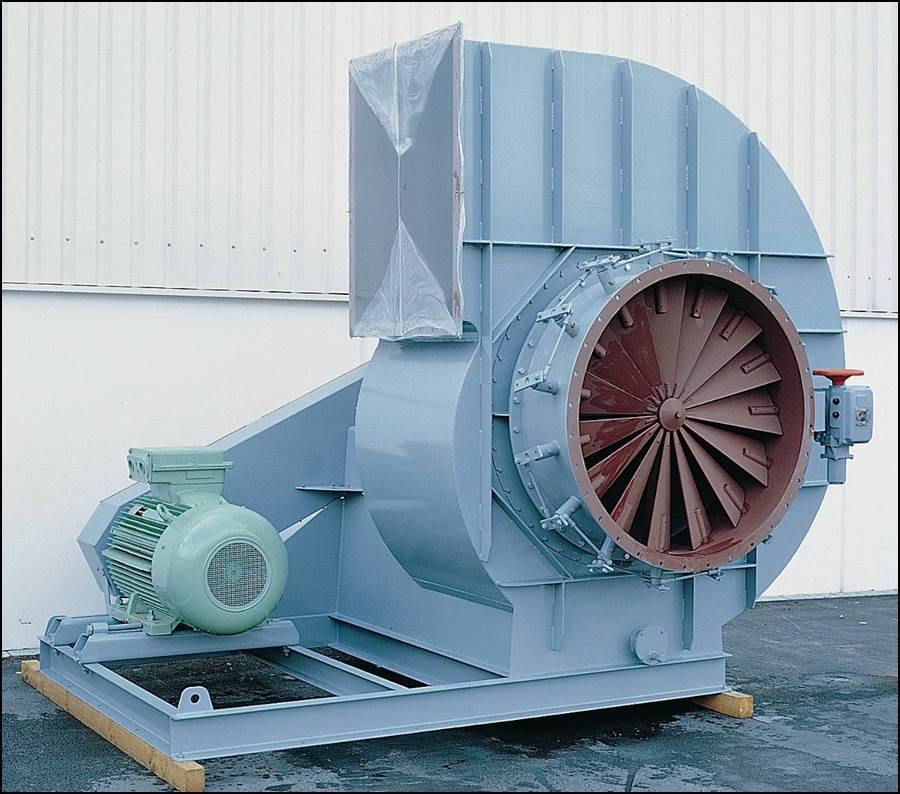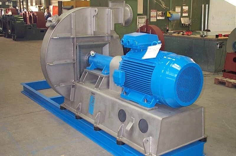 Napęd przez wał silnika, na którym zamontowany jest wirnik. Silnik z wirnikiem montowany jest na otwieranej pokrywie, co umożliwia łatwy dostęp do wirnika. Służy do transportu mediów o dużym stężeniu zapylenia. |