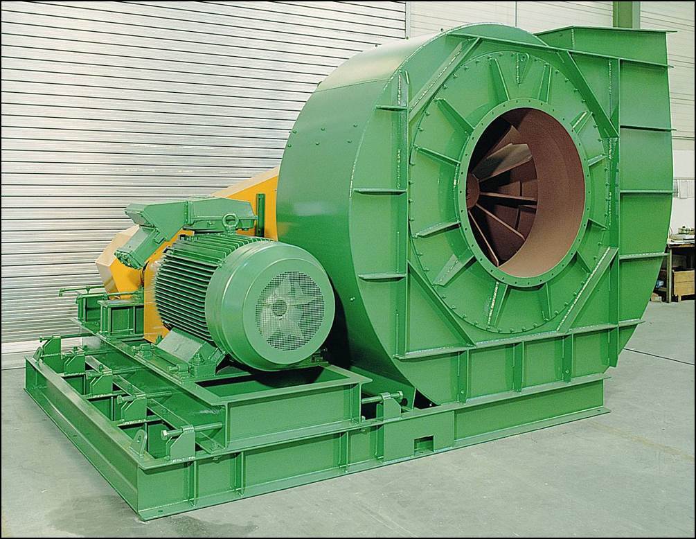 | Moc przesyłana jest z silnika na wał wentylatora przez pasy klinowe. Wał wentylatora zamontowany jest na dwóch oddzielnych łożyskach. Silnik wraz z wentylatorem montowany jest na dodatkowej ramie. Silnik skierowany jest w stronę korpusu wentylatora |